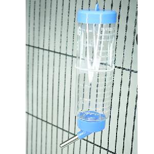 This rabbit drinker is a plastic container that holds water and attaches to the outside of a rabbit cage. It usually has a metal drinking nozzle with a small ball valve that releases water when the rabbit licks it. This design helps keep the water clean and prevents spilling inside the cage.
