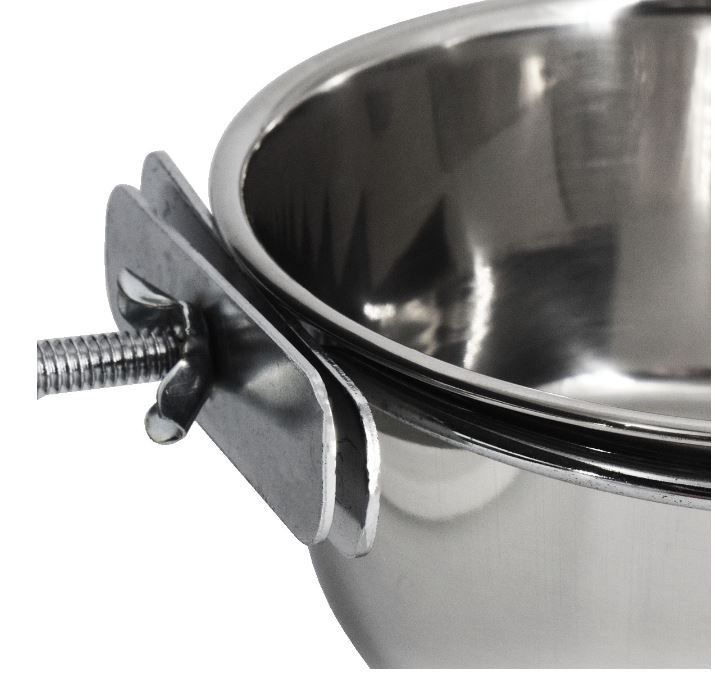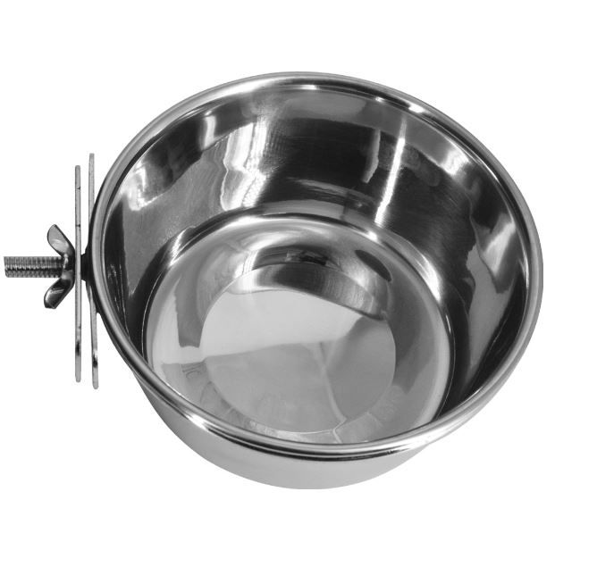 Stainless steel bird feeder, with a capacity of 450 ml. Strong and durable, it is suitable for both food and water.