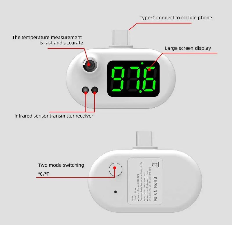 K8 Mini Smart Infrared Body Temperature Thermometer /USB to Mobile Phone
