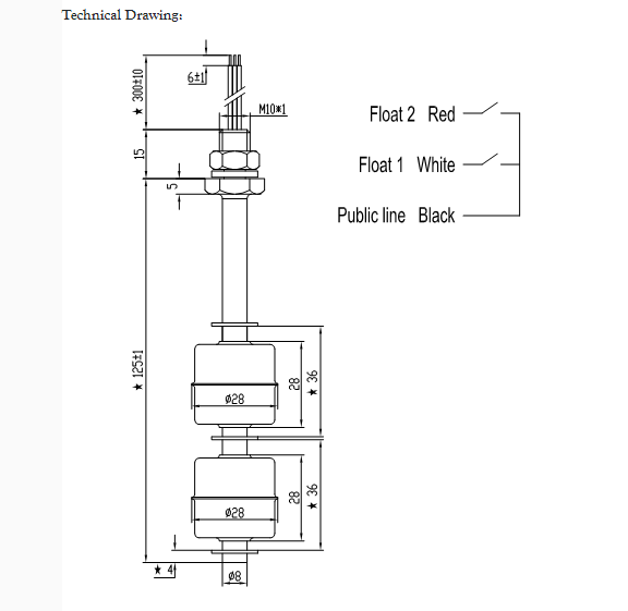 The float switch is a simple structure, easy to install liquid level controller. It has no complex chain to break as long as the choice of material, fluid, pressure or temperature can be used in any medium. Light weight and simple working principle, high reliability.