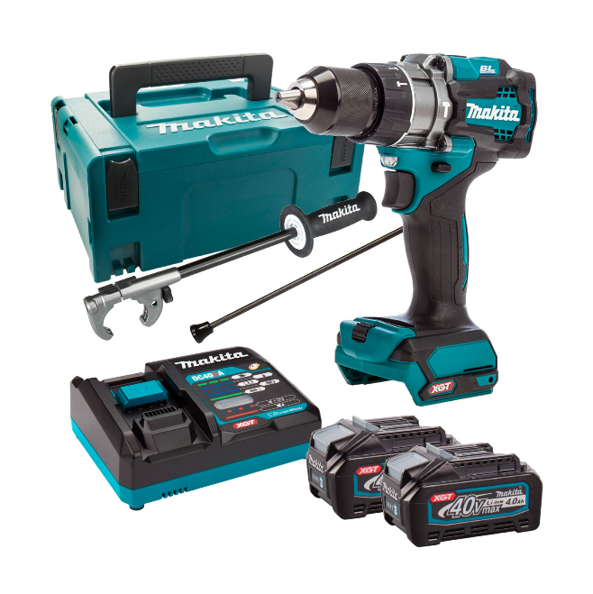 The Makita HP001GD201 is a high-performance cordless drill driver designed for demanding professional applications. The machine comes with two 40V Max XGT lithium-ion batteries to ensure that it delivers exceptional power and runtime, suitable for heavy-duty drilling and driving tasks.