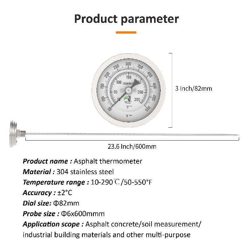 Industrial thermometer, Concrete Temperature Gauge, Soil Survey Thermometer, Bitumen Thermometer, Heavy-Duty Probe, Construction Thermometer, Asphalt Concrete Thermometer, Dial Thermometer, Multipurpose Temperature Meter, Easy Adjustment Thermometer