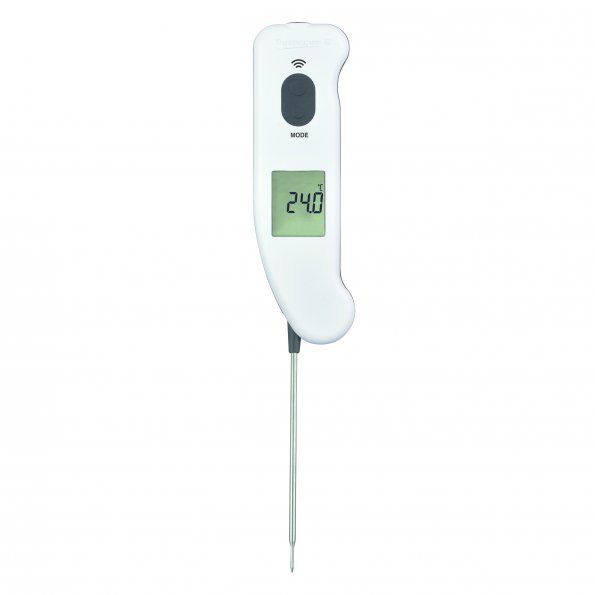 Thermapen® infrared thermometer is a two-in-one device – a RayTemp 2 Plus infrared thermometer and a digital probe thermometer.